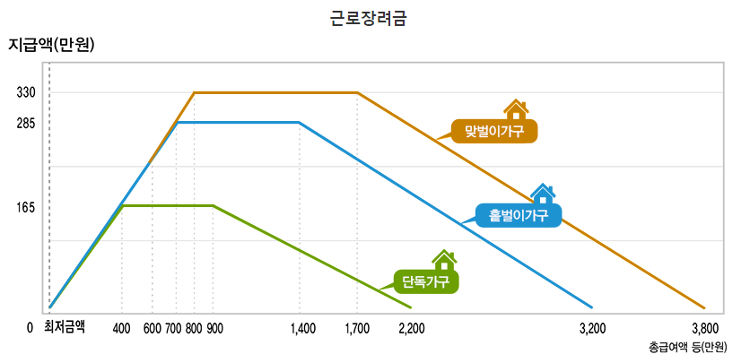 자녀장려금의 경우에는 홑벌이가구나 맞벌이가구 모두 7,000만 원 미만이어야 합니다.