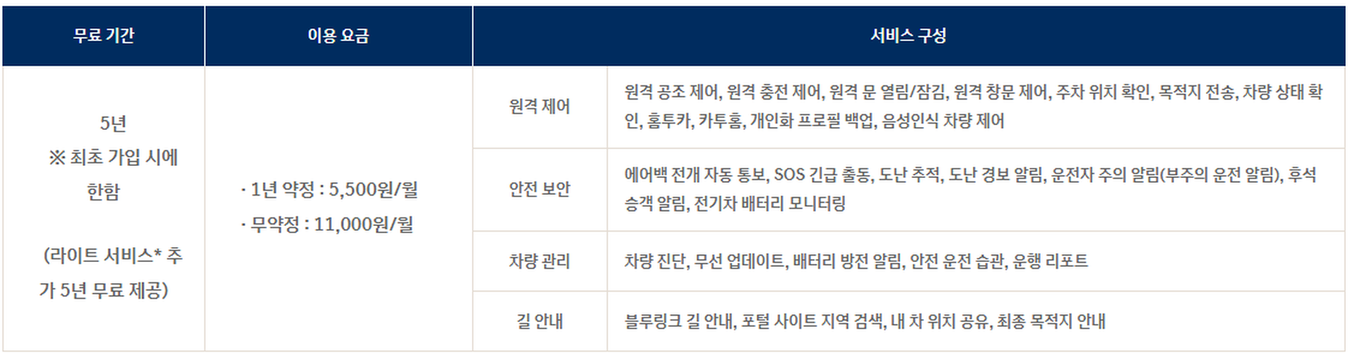 블루링크 홈페이지에서 제공하는 주요 기능