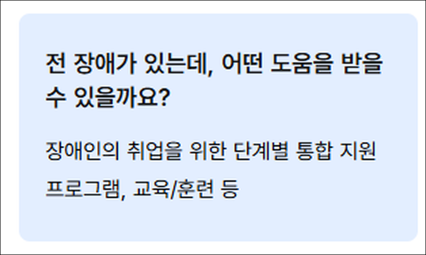ㅇ 개인서비스 취업지원, 실업급여, 출산휴가급여, 육아휴직급여, 직업훈련에 대한 종합 정보 ㅇ 기업서비스 청년·고령자·외국인 채용지원, 신규채용·고용유지·유연근무·일자리전환 지원