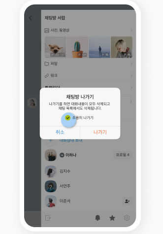 | Step 3 | 채팅방 하단 나가기 버튼을 클릭합니다. |