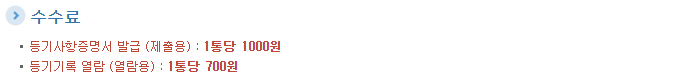 등기부등본 열람의 비용